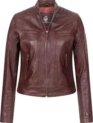 Damen Lederjacke Biker Jacke Echtleder Motorradjacke Leder Jacken Damenjacke Stehkragen Winterjacke Übergangsjacke D-486 Weinrot 2XL