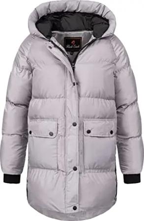 Damen Steppjacke Mantel Leicht Damenjacke Frauen Jacken Stepp Jacken mit Kapuze Daunenjacke Thremojacke D-488 Grau L