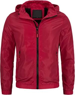 Herren Jacke Windbreaker Leichte Jacke Herren Regenjacke Übergangsjacke Kapuze Outdoorjacke Herrenjacken Sport Jacke H-235 Weinrot S