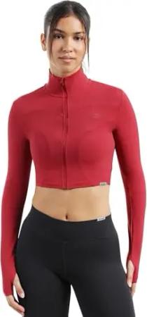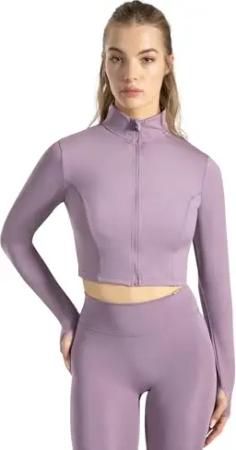 Crop Jacke Damen Nilai, figurbetonte Sportjacke mit Stehkragen, Frontzipper & Daumenlöchern, Funktionsjacke, ideal für Alltag, Training, Athleisure, Fitness, Yoga & moderne Activewear