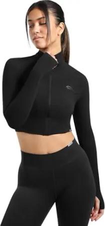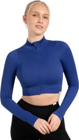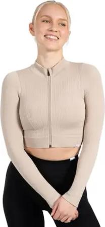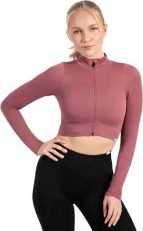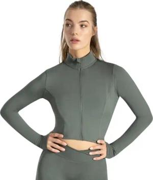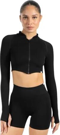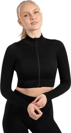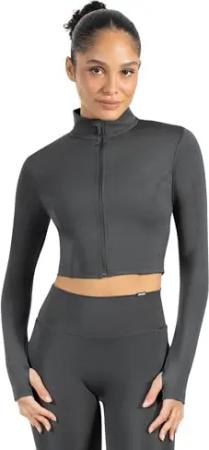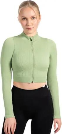 Crop Jacke Damen Harly, Seamless Trainingsjacke mit Stehkragen, Reißverschluss & Daumenlöchern, ideal für Sport, Warm-up, Freizeit, Layering, Yoga, Training & moderne Activewear