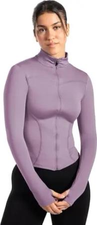 Sportjacke Damen Kenna, Laufjacke mit Stehkragen, Sport Oberteil mit tailliertem Schnitt & Daumenlöchern, Körperbetonte Sportjacke, Fitness Oberteil ideal für Freizeit, Sport, Laufen & Yoga