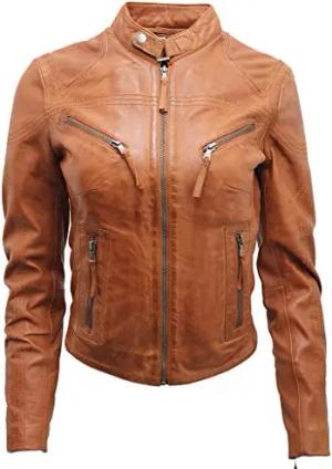 Damen Retro Bräunen 100% Nappaleder Bikerjacke XL