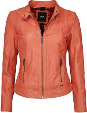 Damen Orange Lederjacke Klassische Bikerjacke Aus Echtem Leder L