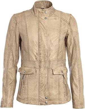 Beigefarbene Lederjacke Mit Reißverschluss, , Größe: 44