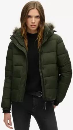 Superdry Damen Kurz Geschnittene Mid Layer Kapuzenjacke Grün - Größe: 42