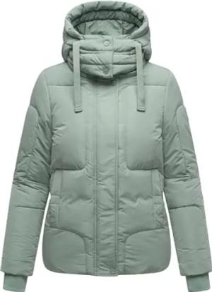 Damen Winterjacke warme Steppjacke mit warmem Fleece-Futter und Abnehmbarer Kapuze Zauberlicht 14 Smokey Mint Gr. S