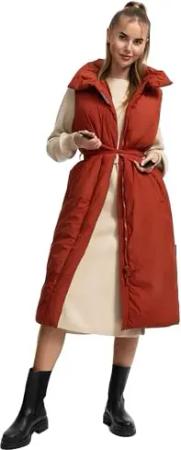 Damen ärmellose lange Outdoorweste warme Winterjacke mit Taillengürtel und Magnet-Flap Abendlied XIV Terracotta Gr. XXL