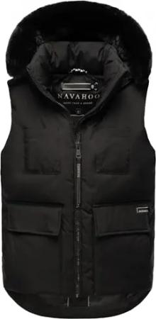 Damen ärmellose Outdoorweste warme Winterjacke mit Kapuze und abnehmbarem Kunstfell Zimthäschen XIV Black Gr. M