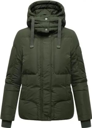 Damen Winterjacke warme Steppjacke mit verstellbarer Kapuze und magnetischen Details Pastellzauber 14 Dark Olive Gr. L