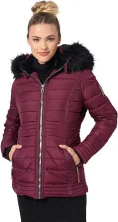 Damen warme Winter Steppjacke mit abnehmbarer Kunstfell-Kapuze Milianaa Rusty Cinnamon Gr. XS