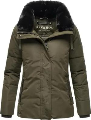 Damen Winterjacke warme Steppjacke mit Kapuze und abnehmbaren Kunstfell-Kragen Sag ja XIV Dark Olive Gr. L