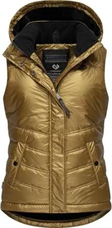 Damen ärmellose shiny Outdoorweste warme wasserdichte Winterjacke mit abnehmbarer Kapuze Hesty Bling YOUMODO Inca Gold Gr. XS