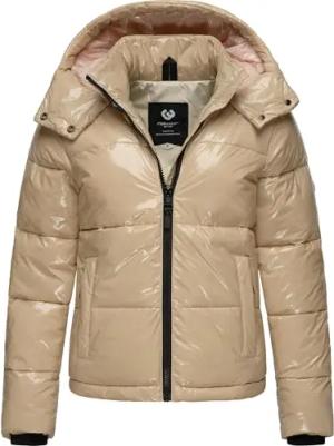 Shiny Damen Winterjacke warm aus glänzendem Material mit (Abnehmbarer) Kapuze Roobie YOUMODO Taupe Gr. XS
