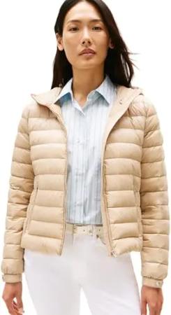 Damen Steppjacke Down Hooded Jacket mit Reißverschluss, Beige (Beige), M