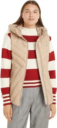 Damen Weste Chevron Vest Steppweste mit Kapuze, Beige (Beige), S
