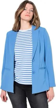 Damen große Größen Übergrößen Plus Size Blazer, Fitted Fit, Reverskragen, Knopfverschluss azurblau 52 838769726-52