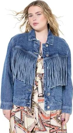 Damen große Größen Übergrößen Plus Size Jeansjacke, Boxy Shape, Fransen Blue Denim 46+ 840576902-46+