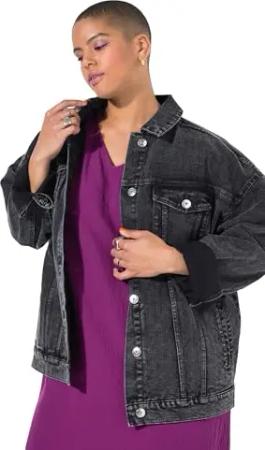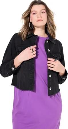Damen große Größen Übergrößen Plus Size Jeansjacke, Cropped, Cutted Saum Black 46+ 838668100-46+