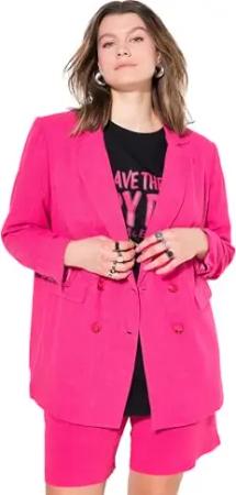Damen große Größen Übergrößen Plus Size Leinenmix-Blazer, Loose Fit, Doppelreiher neon pink 46+ 839307528-46+