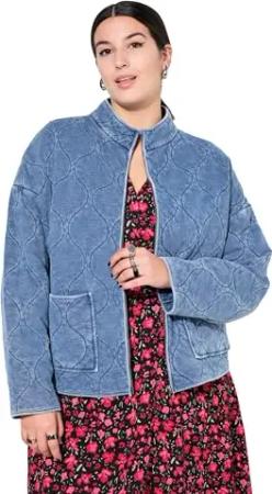 Damen große Größen Übergrößen Plus Size Jeans-Bomberjacke, Steppfutter, verdeckter Zipper Light Blue 42+ 838695901-42+