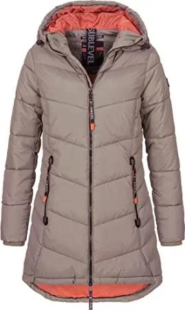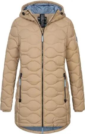 Damen Winter Jacke Mantel Parka Steppjacke Steppmantel Wintermantel, Farbe:Beige, Größe:S 36