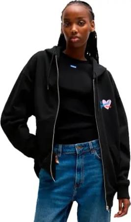 Hoodie Logo Lady, Lässiges Damen Sweatshirt, Frontreißverschluss, Hoodie, 100% Baumwolle, Schwarz/Schwarz, XS