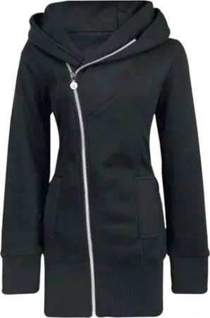 Damen Jacke mit Kapuze für Hausanzug, Sportanzug oder Jogginanzug Oberteil, Farbe:schwarz, Größe:M