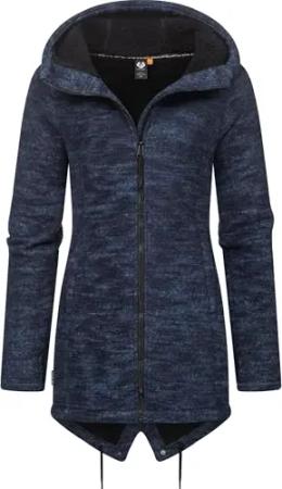 Damen weiche Strickjacke leichte Übergangsjacke mit kuscheligem Teddyfleece und Kapuze Lyshka Melange YOUMODO Navy Gr. XL