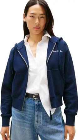 Damen Hoodie mit Reißverschluss Script Pique Zip-Up mit Kapuze, Blau (Dark Night Navy), XXS