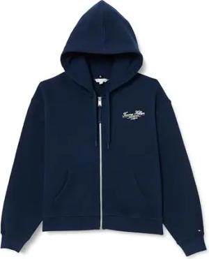 Damen Hoodie mit Reißverschluss Script Pique Zip-Up mit Kapuze, Blau (Dark Night Navy), M