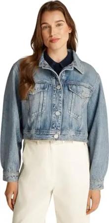 Damen Jeansjacke Straight Jacket Sam Cropped, Blau (Sam), 34