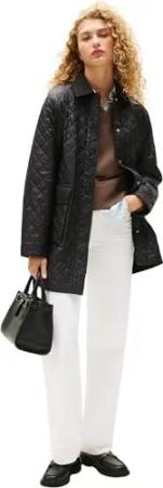 Damen Steppjacke Padded Nylon Quilted Lang, Schwarz (Black), XS