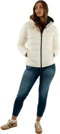 Damen Tjw Slim Hood Prnt Down Jckt Ext Dw0dw21617 Pufferjacke, White (Ecru), M EU