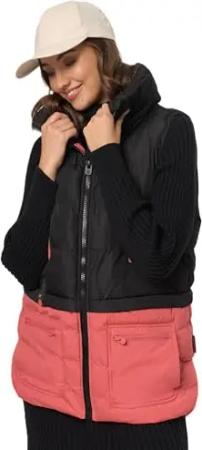 Damen Steppweste leicht mit Abnehmbarer Kapuze Colourblocking-Stil Shadaa Multikulti Multicolour Green Forest Gr. XS