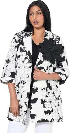 Damen große Größen Übergrößen Plus Size Jacke, Rippstruktur, Reverskragen, Blüte abnehmbar schneeweiß 42+ 838741200-42+