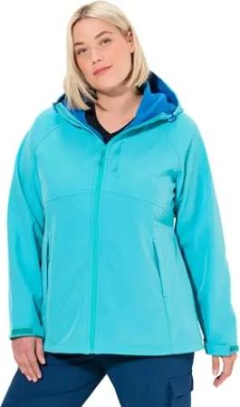 Damen große Größen Übergrößen Plus Size Softshelljacke, Kapuze, Zipptaschen, Klettriegel türkis 46+ 832356755-46+