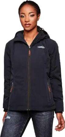 Damen Softshelljacke mit Kapuze Funktionsjacke Übergangsjacke Windbreaker B921 [B921 - Navy Größe XS - Gr. 34]
