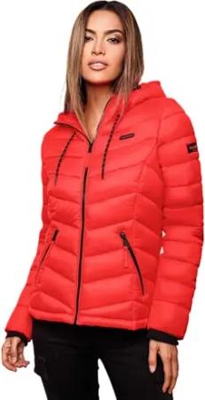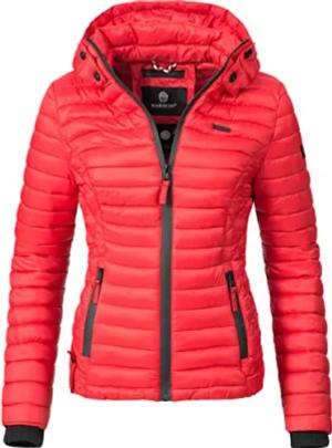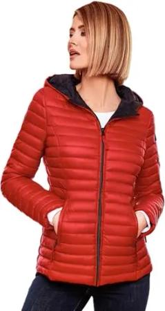 Damen Übergangsjacke leichte Steppjacke kurz mit Kapuze Lucy Rot Gr. XS