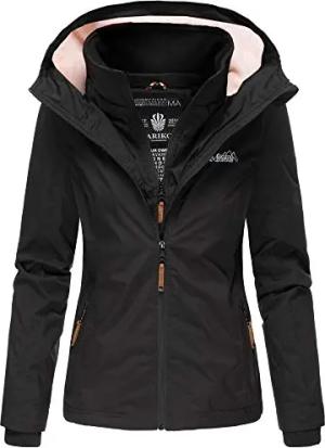leicht gefütterte Damen Übergangsjacke kurze Sommerjacke mit kuscheligem Fleece-Innenfutter und großer Kapuze Erdbeere Schwarz Gr. XS