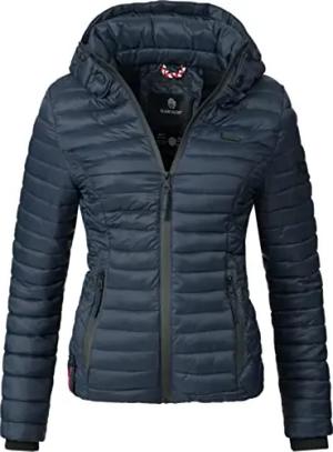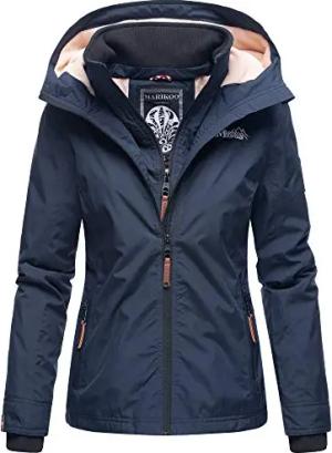 leicht gefütterte Damen Übergangsjacke kurze Sommerjacke mit kuscheligem Fleece-Innenfutter und großer Kapuze Erdbeere Navy Gr. M