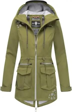 Damen Übergangsjacke Outdoor Regenjacke Fleece Jacke Gefüttert Kapuze XS - XXL ERDBEERE (XS, Moss Green)