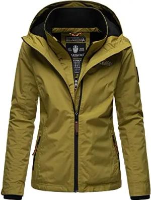 leicht gefütterte Damen Übergangsjacke kurze Sommerjacke mit kuscheligem Fleece-Innenfutter und großer Kapuze Erdbeere Olive Gr. L