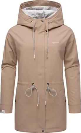 Damen Regenjacke wasserdichter gefütterter Windbreaker mit Kapuze Rochele Warm YOUMODO Sand Gr. L