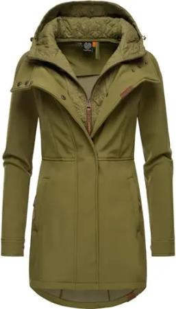 Damen Softshellmantel lange Übergangsjacke Outdoormantel mit Kapuze Ybela Light Olive23 Gr. 4XL