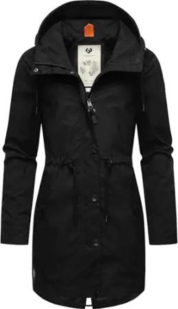 Damen Übergangsjacke leichte Jacke lang mit Kapuze Canny Black24 Gr. XL