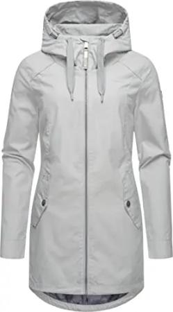 Damen Übergangsjacke leichte Jacke lang mit Kapuze Mondda Light Grey Gr. M