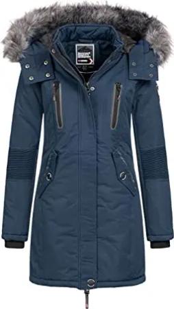 Coraly Lady - Warmer Halbdicker Parka Frau Herbst Winter - Feiner Mantel Kapuze Und Kunstpelz - Windjacke Daunenjacke Lang - Ideal Geschenk Frauen (Marine XXL-Größe 5)