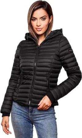 Damen Winterjacke warme Steppjacke mit verstellbarer Kapuze und magnetischen Details Pastellzauber 14 Black Gr. L