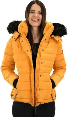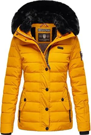 Damen warme Winter Steppjacke mit abnehmbarer Kunstfell-Kapuze Milianaa Yellow Gr. XS